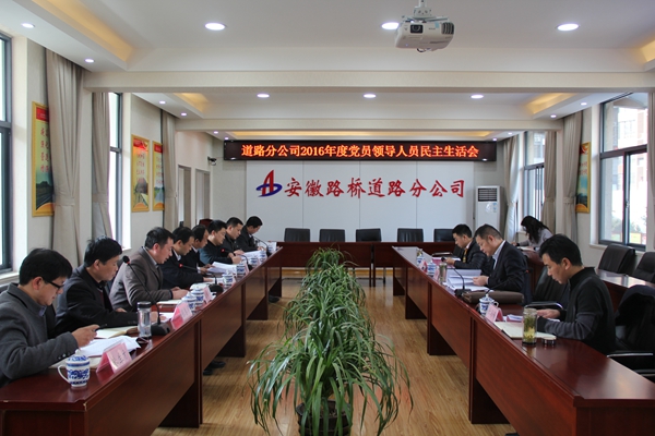2月16日下午,道路分公司召開2016年度黨員領導人員民主生活會。公司黨委書記、董事長、總經理孫學軍,黨委委員、副總經理杜海峰出席會議。會議由分公司黨總支副書記王秋華主持。