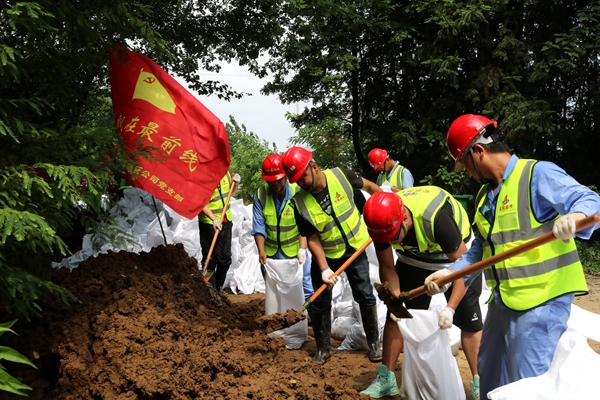 在搶險(xiǎn)救援一線,黨員先鋒隊(duì)、青年突擊隊(duì)的旗幟高高飄揚(yáng),路面公司領(lǐng)導(dǎo)班子帶隊(duì)奮戰(zhàn)一線,揮鍬挖土,裝袋筑堤。經(jīng)過連續(xù)24小時(shí)的奮戰(zhàn),最終筑起一道“安全堤壩”。