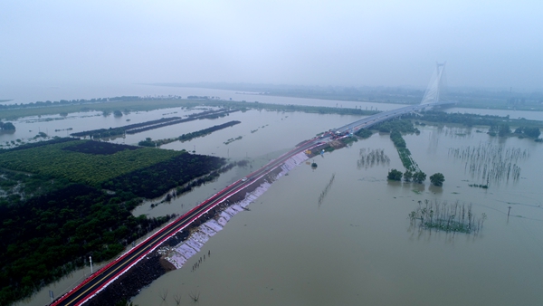 八百里巢湖,水位連續(xù)多日超百年一遇標準。7月22日深夜,由安徽路橋市政分公司黨員職工組成的抗洪搶險突擊隊緊急集結到環(huán)巢湖大道杭埠河大橋處,筑壩固堤,抗洪搶險,打響蓄洪道路保通攻堅戰(zhàn)。經(jīng)過三天三夜的連續(xù)奮戰(zhàn),筑起了一條長600米、寬12米、高4.5米的“紅色堤壩”。