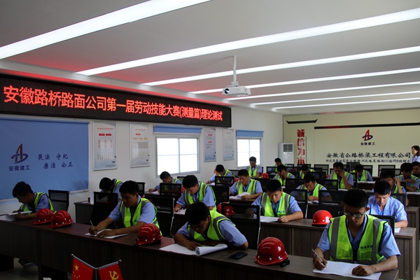 為加強專業(yè)技術人才培養(yǎng),大力弘揚工匠精神,建設知識型、技能型、創(chuàng)新型和實干型人才隊伍,9月28日上午,路面公司第一屆勞動技能大賽之測量試驗比賽在明巢高速05標項目部成功舉辦。集團公司工會女工委副主任饒曉寧,公司黨委委員、總工程師彭申凱,黨委委員、副總經(jīng)理杜海峰,工會主席楊建強,黨委辦公室主任李靜波應邀出席并觀看比賽。