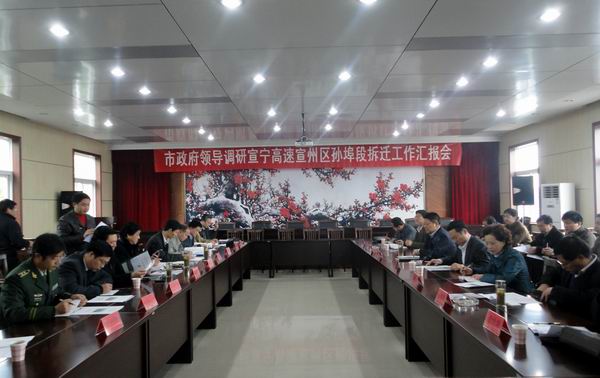 進(jìn)行現(xiàn)場(chǎng)了解之后,虞市長(zhǎng)立即在孫埠鎮(zhèn)政府主持召開了相關(guān)工作會(huì)議。會(huì)議過程中,虞市長(zhǎng)認(rèn)真聽取了孫埠鎮(zhèn)黨委史書記、鎮(zhèn)政府胡鎮(zhèn)長(zhǎng)的工作匯報(bào)和我部項(xiàng)目經(jīng)理張慶書所作的有關(guān)施工進(jìn)展情況以及當(dāng)前面臨的重大客觀困難的情況介紹。隨后立即組織了討論解決問題的對(duì)策。虞市長(zhǎng)指出:作為政府方面,宣城市交通局、宣州區(qū)政府以及孫埠鎮(zhèn)政府必須從宣城市大局發(fā)展的角度,提高認(rèn)識(shí)、明確責(zé)任、開通思路、多想辦法、強(qiáng)化措施,保證在月底前完成宣寧高速02標(biāo)段紅線內(nèi)房屋拆遷工作,為安徽省公路橋梁工程公司提供一個(gè)暢通、穩(wěn)定的施工環(huán)境!