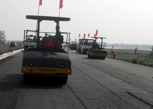 響徹云霄的鞭炮聲、耀眼的紅旗、燦爛的陽(yáng)光,共同見證了蚌淮路橋人的風(fēng)采。此次試驗(yàn)段的成功鋪筑,標(biāo)志著項(xiàng)目部的主體工程施工全面展開,為該項(xiàng)目總體目標(biāo)的實(shí)現(xiàn)奠定了堅(jiān)實(shí)基礎(chǔ)。
