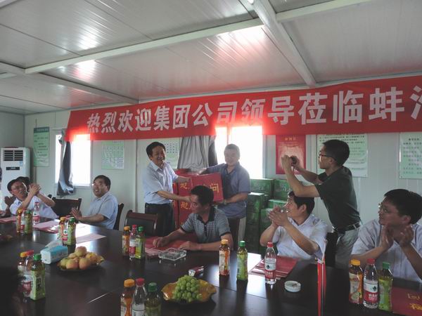 我部項(xiàng)目經(jīng)理王煒生就項(xiàng)目的施工總體進(jìn)度及近期工作開(kāi)展、完成情況,向李總一行領(lǐng)導(dǎo)作了簡(jiǎn)要的匯報(bào)。李總在認(rèn)真聽(tīng)取了匯報(bào)后,指出省高速控股集團(tuán)公司會(huì)大力支持建設(shè)單位的工作,建設(shè)單位要重質(zhì)量、保安全、抓進(jìn)度;希望建設(shè)單位要積極克服各種施工困難,早日實(shí)現(xiàn)蚌淮高速公路通車的目標(biāo)。