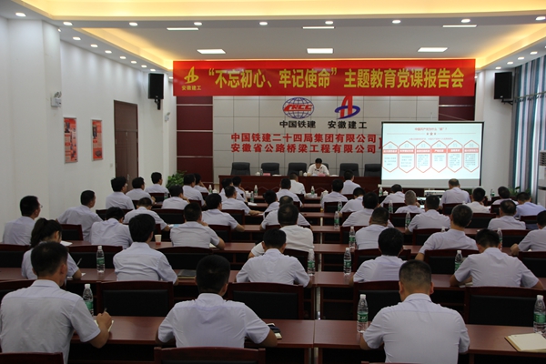 結(jié)合前期參加主題教育的學(xué)習(xí)感悟和調(diào)研情況,許克順以《踐行初心使命,勇于擔(dān)當(dāng)作為,為新時(shí)代打造一流安徽建工持續(xù)貢獻(xiàn)力量》為題給大家講授了一堂專題教育黨課。他從牢記初心使命、強(qiáng)化擔(dān)當(dāng)作為,正視問題差距、狠抓整改落實(shí),勇于自我革命、永葆青春活力三個(gè)方面進(jìn)行了講解,理論與實(shí)踐相結(jié)合,闡述了當(dāng)前形勢下國有企業(yè)的初心和使命,并就如何打好防范化解重大風(fēng)險(xiǎn)攻堅(jiān)戰(zhàn)、生產(chǎn)經(jīng)營年度目標(biāo)任務(wù)完成、助推品質(zhì)路橋卓越路橋建設(shè)進(jìn)行了分析。他要求重視風(fēng)險(xiǎn)防控,制定針對性防范化解措施,把學(xué)習(xí)教育、調(diào)查研究、檢視問題、整改落實(shí)貫穿于主題教育全過程,促進(jìn)公司健康穩(wěn)定發(fā)展。