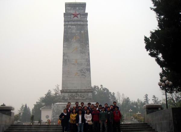 金寨是紅軍的故鄉(xiāng),將軍的搖籃。金寨縣革命烈士陵園是融博物館、紀念堂、革命烈士紀念塔、紅軍墓為一體的大型陵園,是全國重點烈士建筑物保護單位。清明之際,烈士陵園莊嚴肅穆、松柏凝翠、楊柳吐綠,在料峭的春風(fēng)中,大家向革命烈士紀念塔敬獻了花籃,并肅立默哀,向烈士們致以崇高的敬意,表達深切的懷念。祭掃結(jié)束后,大家還參觀了革命博物館、烈士紀念堂。一幅幅陳舊的老照片,一件件革命烈士遺物,無聲地述說著烈士們當(dāng)年艱苦樸素的生活作風(fēng)和寧死不屈的愛國精神。