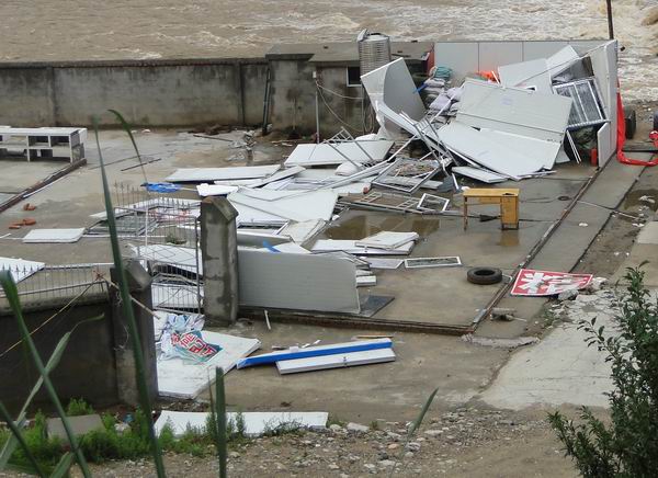 由于項(xiàng)目部及時(shí)通知人員撤離,所以沒(méi)有造成人員傷亡。災(zāi)情發(fā)生后,項(xiàng)目經(jīng)理王遠(yuǎn)勝帶領(lǐng)安全部部長(zhǎng)萬(wàn)和國(guó)趕赴現(xiàn)場(chǎng)了解損失情況。王經(jīng)理組織工區(qū)長(zhǎng)、班組長(zhǎng)召開(kāi)現(xiàn)場(chǎng)會(huì)議,要求災(zāi)情面前“人命大于天”,無(wú)論是面對(duì)洪水、塌方還是龍卷風(fēng),首先要確保人員安全;其次對(duì)山區(qū)的惡劣天氣和自然災(zāi)害的危害性要估計(jì)得更加充分,安全工作要更加仔細(xì);最后要求大家鼓足信心,清理現(xiàn)場(chǎng)、修復(fù)損壞設(shè)備,爭(zhēng)取七天內(nèi)恢復(fù)施工。