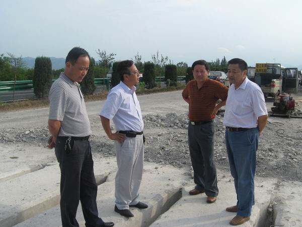 殷書記首先視察了我部于15日順利完成瀝青施工的無量溪大橋,詳細(xì)詢問和了解了原橋梁施工方案以及橋面橡膠瀝青的鋪筑情況,并要求在后續(xù)的施工過程中要繼續(xù)嚴(yán)把質(zhì)量關(guān),確保廣祠高速能夠成為一條質(zhì)量經(jīng)得起考驗的改建工程。隨后殷書記又來到正在施工的封閉路段,勘察了正在進(jìn)行的橋梁施工,詢問了我部的施工計劃,并叮囑了在橋梁施工中要注意的一些問題。