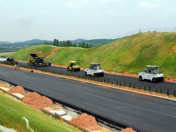 上午9時(shí),各項(xiàng)工作準(zhǔn)備就緒,隨著項(xiàng)目經(jīng)理一聲令下,拌合樓、攤鋪機(jī)、壓路機(jī)等設(shè)備全部運(yùn)轉(zhuǎn)起來(lái)?,F(xiàn)場(chǎng)施工人員各司其職,井然有序。隨著一車車混合料倒進(jìn)攤鋪機(jī)料斗,一段平整的瀝青中面層呈現(xiàn)在眼前。經(jīng)過(guò)壓路機(jī)的反復(fù)碾壓,最終經(jīng)現(xiàn)場(chǎng)試驗(yàn)檢測(cè),各項(xiàng)數(shù)據(jù)均符合施工規(guī)范要求,為下階段大面積施工奠定了基礎(chǔ)。